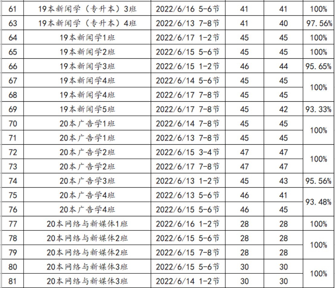 (三)以上查课情况,如有误的,请向各班辅导员老师反馈(须提供事实依据),经核实后,学院将统一修正。