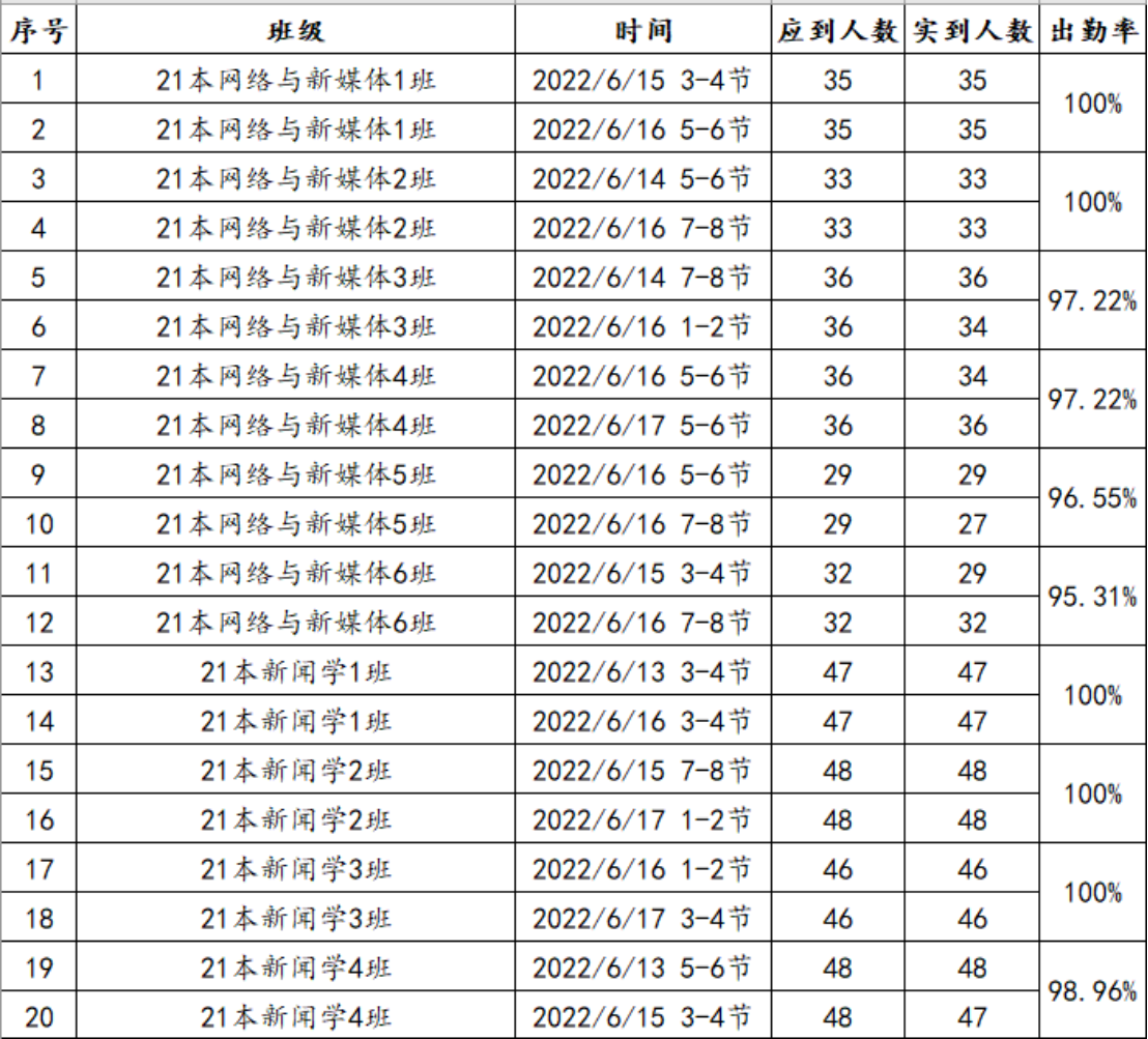 (一)原则上每周每个班课堂检查情况不低于2次,根据平均到课情况计算出勤率。