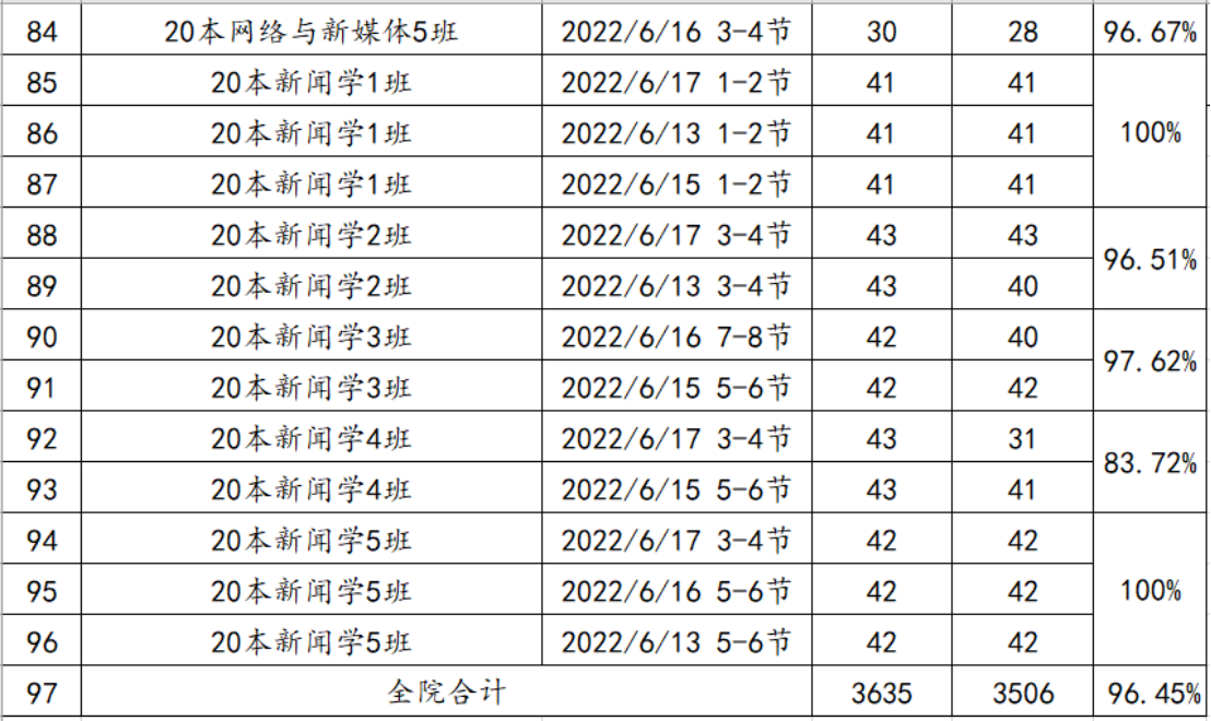 现将第17周全院上课考勤抽查情况公布如下。