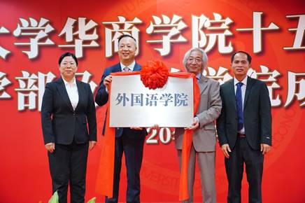 2020年1月9日上午,广东财经大学华商学院十五周年校庆启动暨人文学部及相关学院成立授牌仪式在图书馆学术报告厅举行。参加授牌仪式的领导嘉宾有:华商教育集团董事长廖榕就博士、华商学院高级顾问胡军教授、郭银华执行校长,苏宁书记等学校领导,以及各处、室、二级学院、教学部、馆、中心负责人和教师代表。仪式由支戈壁副校长主持。