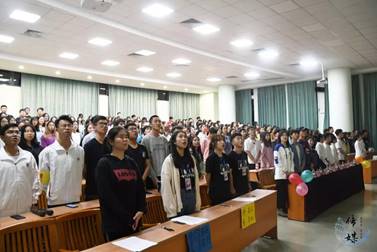 大会伊始,全体学生起立奏唱团歌。