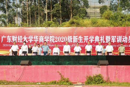 本网讯:太阳成tyc9728集团2020级新生参加校开学典礼暨军训动员大会。2020年9月21日,我校在西区操场成功召开了2020级新生开学典礼暨军训动员大会。我院2020级全体新生参加了本次大会。华商教育集团董事长廖榕就博士、广东财经大学邹新月副校长、华商学院执行校长郭银华教授、党委苏宁书记,增城武装部童胜熊中校、2020级新生军训团梁文财团长、华商学院副校长王列耀教授、华商学院副校长张捷教授、华商学院副校长陈美华、钟森文、王力东以及军训团领导小组成员、各二级院系的学工负责人及相关职能部门负责人出席本次会议。本次大会由副校长王锦绣主持。