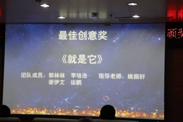 答:最佳创意奖是让我印象深刻的作品,虽然脑洞大开,剧情悬疑,留下悬念,但是都能回归到”我和增博的故事”的主题上,这一点是非常优秀的,不会让作品那么呆板,整个剧情既富含具备可看性,又饱含兴趣点,我们学生十分具有的想象力。