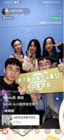 开播前组员们就选品、链接、价格等因素进行了热烈讨论,欲更好地给观众展示最好的一面。开播时,莹莹主播和语嫣主播很快地进入了状态,开场欢迎、自我介绍、设备测试等一气呵成。锦雄这边的后台负责搜索相关资料,分享链接宣传等,给直播间带来了不小的人气。惠贞场控则负责背景音乐的播放及现场气氛的营造。小助理静蕾则充当产品试用员,给观众展示商品最真实的一面。就这样直播进行地如火如荼,场面一度很热烈。期间锦雄、莹莹还给观众表演了才艺,直播最后以五人现场合唱“小酒窝”结束。