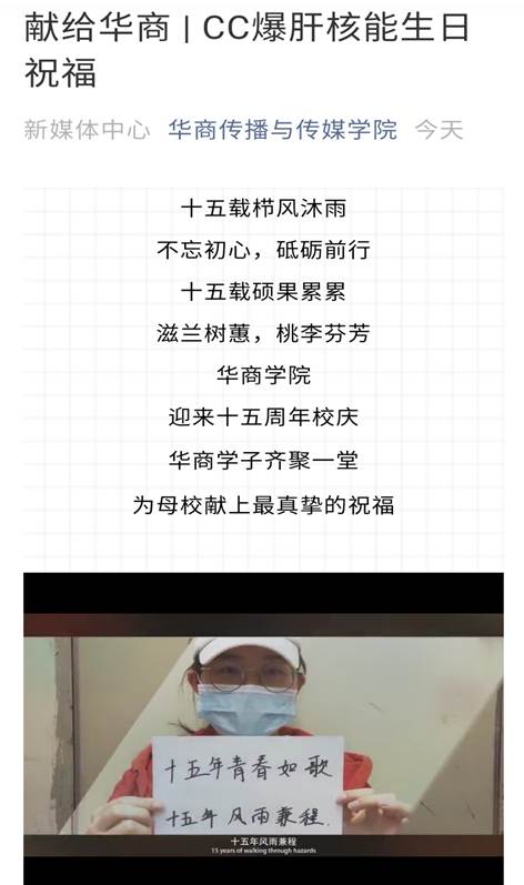 本网讯:太阳成tyc9728集团新媒体中心B站制作祝福短片献礼华商十五华诞。为庆祝tyc太阳成9728集团成立十五周年,太阳成tyc9728集团新媒体中心各平台通力合作,拍摄并制作祝福短片,为校庆活动加油助力。祝福短片已于24日在传院新媒体中心各大平台上线。