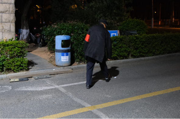 工作的重头戏是夜间巡逻。星垂平野,宿舍里的我们早已拿着手机、抱着枕头开始“夜生活”。但对保卫工作而言,夜里往往成为刘叔他们最须保持警惕的时段。尽管频率很低,但也遇到过几回突发事故:早年宿舍管理还没有那么完善,一对情侣午夜一点多才回校。巡逻队四五点突然发现一个男生晕躺在草堆里,女生守在一旁不知所措。
