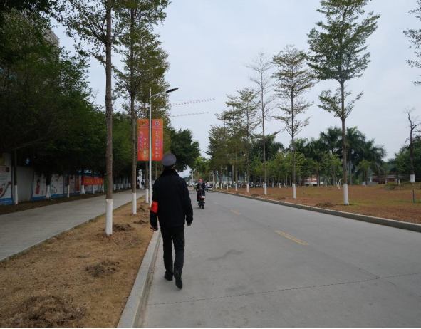 校外也是巡逻区域,整个校区直到华商街都要巡逻。巡逻的重点是天桥和学校围墙。职院附近在修建隧道,据他猜测等隧道开通,周边也会被加进巡逻区域里。“虽然不能做到面面俱到,但我们要尽我们所能,保护学校的安全。”