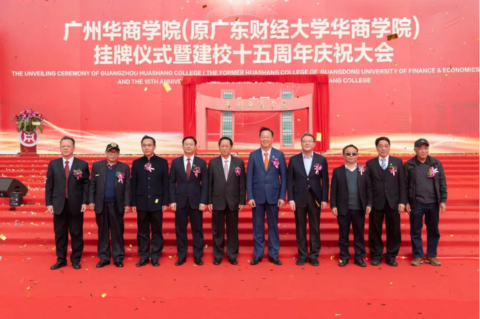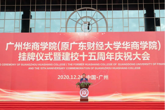 桃李满园贺华诞,百年大业铸辉煌。12月26日,tyc太阳成9728集团(原广东财经大学华商学院,以下简称华商学院)挂牌仪式暨建校十五周年庆祝大会在学校中央图书馆广场举行。大会由执行校长郭银华主持。