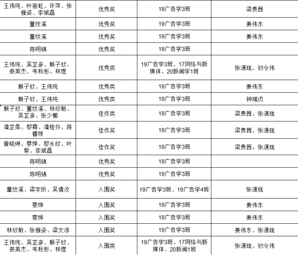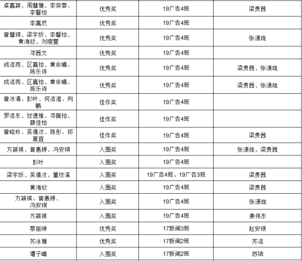 太阳成tyc9728集团历来重视学生专业技能培养,将专业教育、素质教育和职业教育贯通,加强专业课程改革,引导学生适应快速发展的社会环境,提高学生的策划能力、动手能力、协调组织能力,促进专业人才培养方案的完善,提升人才培养质量。近些年来,在“以赛促教、以赛促学、学赛结合”思路指引下,积极组织学生参加中国大学生广告艺术节学院奖、全国大学生广告艺术大赛、全国新媒体创意大赛等重要赛事,学生获得省级以上各类奖项300余项,极大提高了传院学子的专业水平,进一步提高教师教学水平,促进专业教学体系、教学内容和方法的改革,推动学院教学质量提升。