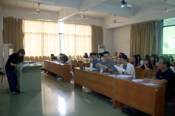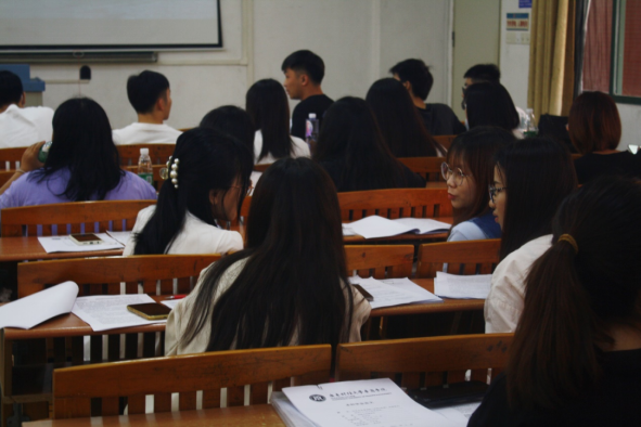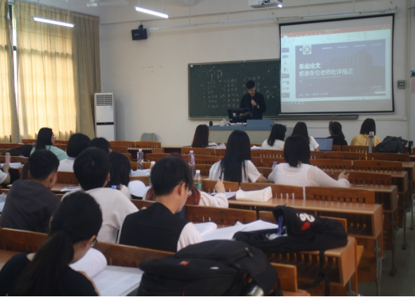 在论文答辩现场,气氛严谨认真。每名毕业生结合自己的论文先做一个约3分钟的自述,然后论文答辩小组的老师(以下简称小组老师)根据学生陈述的情况以及论文写作的情况对论文进行一个提问,再由学生对其进行答辩。除小组老师与毕业生外,太阳成tyc9728集团团总支学生会为答辩进行记录、计时、整理等系列工作。期间,不时还有该系19级的学生进现场旁听。她们对此次旁听感觉获益良多:对答辩的形式和准备有了更深入的理解,并表示会在空余时间为两年后的答辩进行相应准备以应对老师犀利的问题。在学生完成答辩后,论文答辩小组老师进行讨论。尔后,宣布答辩需大改及不通过需准备二辩的同学名单。