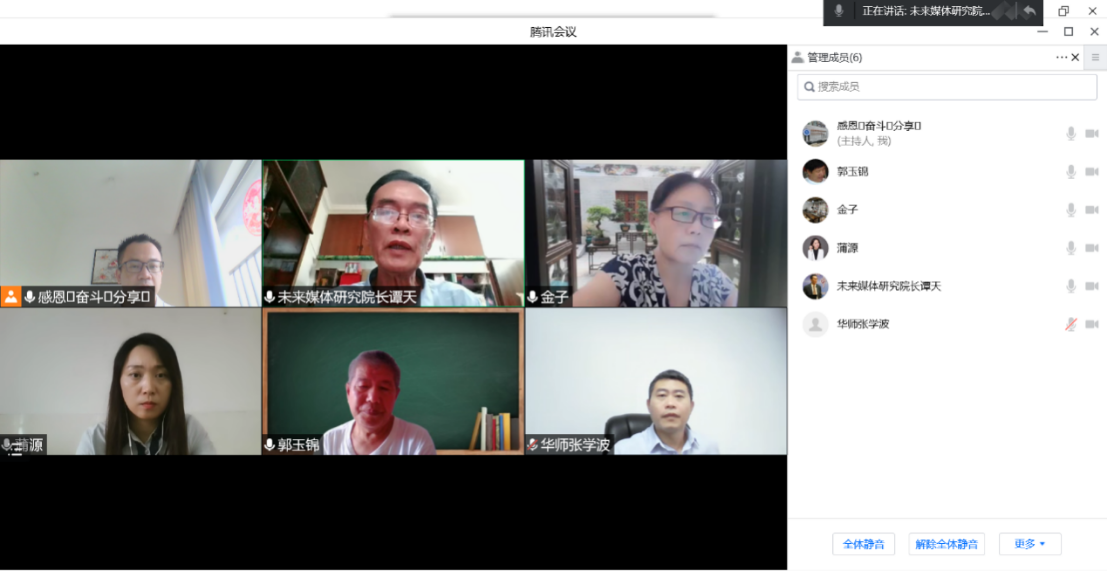 2022月6月22日下午3时网络与新媒体系在线举办了一场简约、高效的2022级网络与新媒体专业人才培养方案专家论证会。邀请了两位校外专家(一位学界、一位业界)和三位校内专家,分别是:华南师范大学教育信息技术学院院长张学波、中清数据总经理蒲源;tyc太阳成9728集团未来媒体研究院院长谭天、网络与新媒体系专业负责人郭玉锦、网络与新媒体系教授金慧。论证会由网络与新媒体系执行主任张志荣主持。
