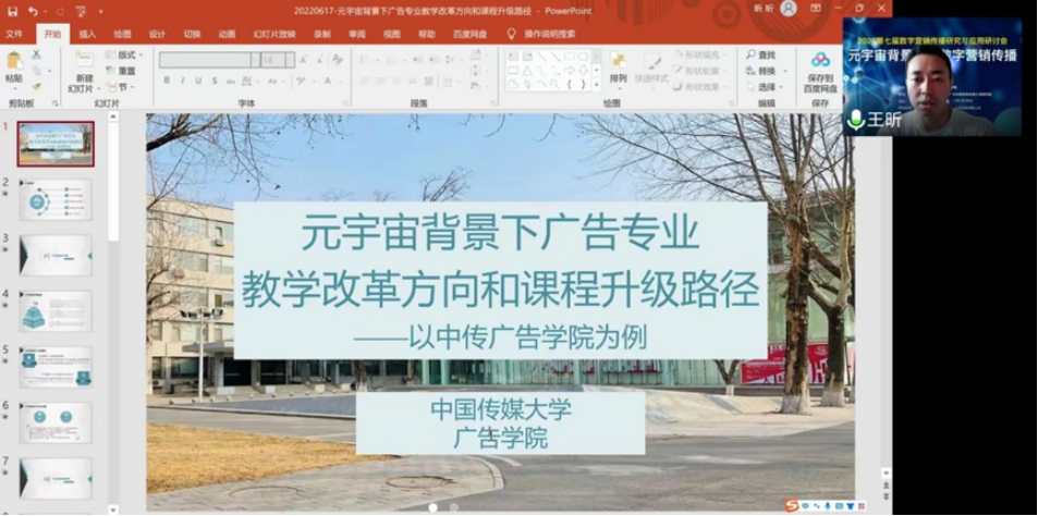 中国传媒大学广告学副院长、首都传媒经济研究基地秘书长、中国传媒大学教材发展中心执行主任王昕教授以中传广告学院为例分享了元宇宙背景下广告专业教学改革方向和课程升级路径。从元宇宙发展与变革,广告专业建设新要求,课程模块及课程地图,实践教学及实验室建设以及科研、教学互哺五个方面展开。并展示了计算广告双学位学士的培养计划,王昕教授指出中传迫切需要适应广告行业发展,需要不断地探索联合培养模式,推动文理科交叉融合的跨学科教育,最终将学生培养成为会用营销传播策略、会做广告设计产品、会数据分析、算法设计的综合性人才。