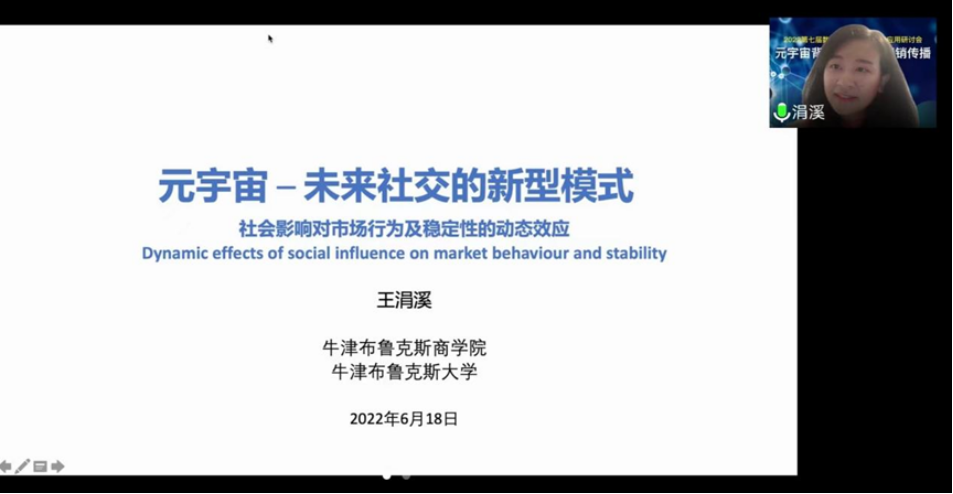 英国牛津布鲁克斯大学王涓溪副教授关注于“元宇宙—未来社交的新模型分享社会影响对市场行为及稳定性的动态效应”。指出元宇宙将使人们的生活去中心化,足不出户就可以感受到精彩纷呈的生活。但是,在机遇之外,元宇宙也带来了无尽风险,比如非理性的投资行为可能使市场发生动荡。在不同的社会影响下,价格由稳定的理性均衡变为非理性不稳定的动态价格,长期的价格变化将从周期性转为混沌性。