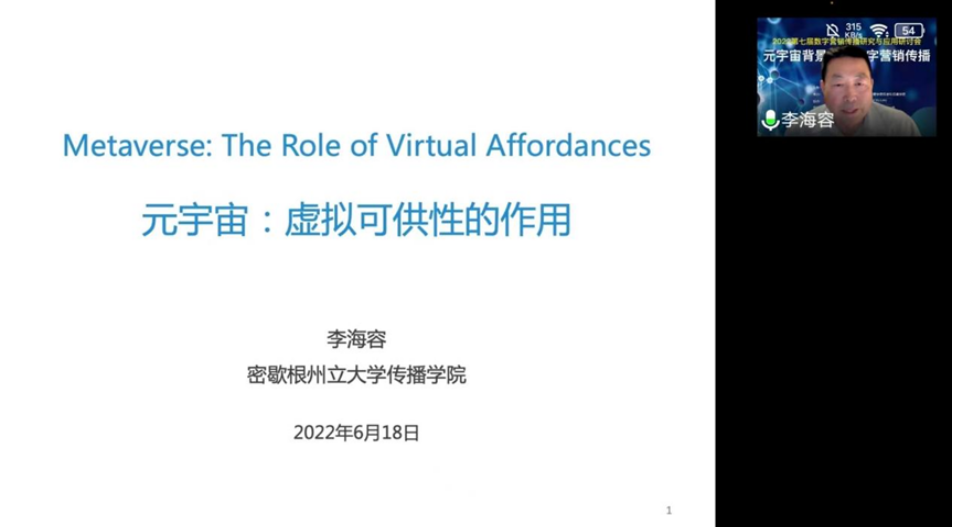 来自美国密歇根州立大学的李海容教授以“Metaverse: The Role of Virtual Affordance”为题发表演讲,以Affordances(可供性)的视角引入探讨,同时也介绍了一些元宇宙的相关品牌的实践,包括:Chipotle ; Samsung ; Forever 21 ; Nike ;Louis Vuitton.