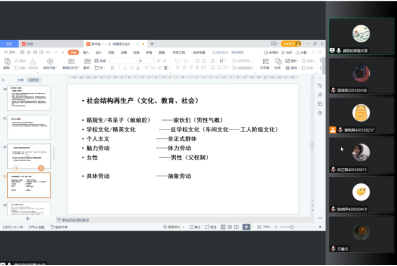 龚丽老师首先对作者的经历及成就进行了简要介绍,并介绍和分析了作品的主要内容。“家伙们”是保罗·威利斯对工人阶级子弟的称呼,“家伙们”通过组织非正式群体、打盹、哄骗和逃学、找乐子、无聊与找刺激等方式反抗权威、抵抗权威所提供的价值观,他们用一种对立的方式来解读传统的校园价值观,并且逐渐形成反学校文化。这种文化在很大程度上是他们工人阶级父辈车间文化的镜像,也使得“家伙们”无法实现阶级的突破。“家伙们”质疑教育和文凭的价值,认定自己面对的所有工作都是类似且无意义的,诸如此类充满局限的“洞察”产生了一个充满讽刺的结果,“恰好是他们自主性的一部分为自己盖上了宿命的封印”,让他们自愿地接受西方资本主义中的从属地位,完成工人阶级再生产。