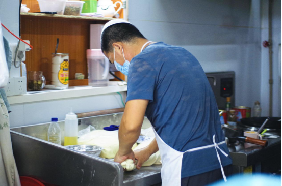 摔、荡、叠、揉,雷赛一气呵成的和面动作使他看上去仿佛是和面技艺方面的集大成者。妻子艾米乃用流利的汉语笑着打趣,“和面是叔叔的专业”。