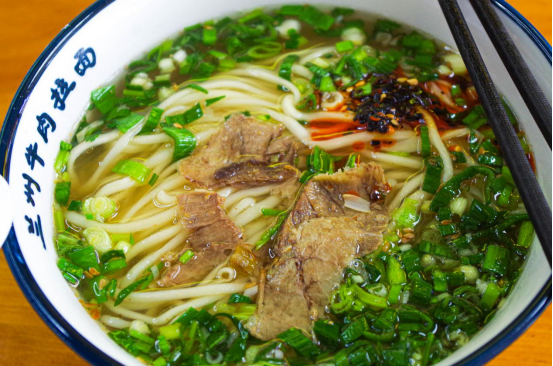 碗里的这碗味道鲜香、色泽诱人的拉面上盖着两片精心排列好的牦牛肉,汤上浮着从点餐台上大口瓷盆里打的一元钱硬币大小的辣椒油。店内,雷赛打开靠近备料台上的一口盖着的锅,用勺子捞起一大捧牦牛肉,看看,接着转头很认真地说道:“这个就要两三百块钱”。
