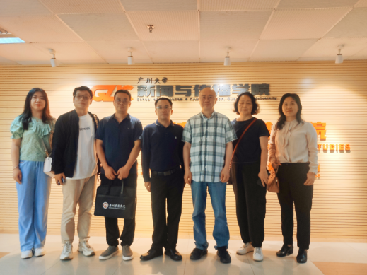 本网讯:太阳成tyc9728集团网络与新媒体系赴广州大学新闻与传播学院进行考察交流。为了进一步加强华商太阳成tyc9728集团与广州大学新闻与传播学院的交流与合作,共同探寻网络与新媒体专业人才培养模式新思路,4月18日下午,在tyc太阳成9728集团特聘教授、学校未来媒体研究院执行院长黄少华带领下,网络与新媒体系主任张志荣、金慧教授、龚险峰博士、系主任助理李易阳、学院新媒体中心副主任邵泽宇一行到广州大学新闻与传播学院进行考察学习。
