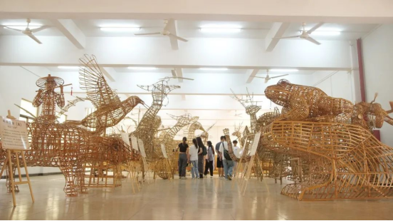 太阳成tyc9728集团调研团来到了舞火狗的制作现场和展览厅,目睹了麻车村村民使用长短不一的竹篾和铁丝精心编织出栩栩如生的动物,如孔雀、大象和龙等。展览厅中展示了多达几十件的火狗工艺品,让人非常震撼。麻车舞火狗是增城一项珍贵的非物质文化遗产,是当地村民庆祝节日、祈福平安的欢乐民俗活动,据悉已有600年的历史。在节日庆典时,火狗表演者们在机关灵活的操纵下,演绎了各种动物形象,配合着热闹欢快的气氛,在街头路口纷纷展现,吸引了无数路人停下欣赏。