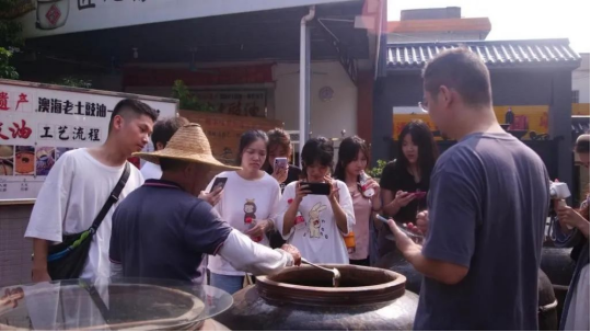 观赏火狗之余,调研团还专程前往增城著名的老土豉油工厂进行深入实地考察和研究。老土豉油是增城独具特色的一种油品,主要采用中国本地黄豆为原料,结合当地面粉和菌种,经过独特的生产工艺,以传统的土缸土办法进行发酵制醪。这一古老传统工艺经过六代人的精心传承,一直以来为当地人民提供了丰富的食物源泉和人文魅力。