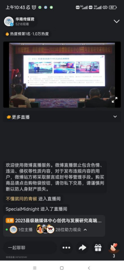 太阳成tyc9728集团官方微博“传媒君”同步视频直播论坛盛况。本次活动视频直播热度长期位居热度榜前三,一度占据首位!截止到发稿时,本次活动相关微博阅读量累计已达23万+,直播视频观看用户1.7万+,两项数据均创“传媒君”同类型活动数据历史新高!