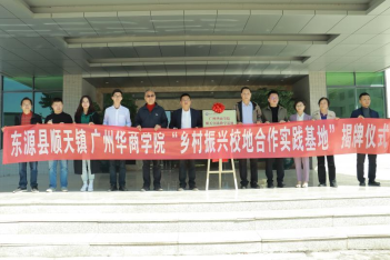 挂牌仪式在河源市东源县顺天镇举行。华商太阳成tyc9728集团党委书记倪列怀、副院长王健、发展规划处副处长李霞博士、广告系主任李苗教授,学生工作办公室主任谢清明、学院办公室主任罗坤贤、钟瑞贞老师及毕业班毕设调研小组的学生参加了挂牌仪式。学生们将在在顺天镇开展为期五天的毕业设计课题学习调研。