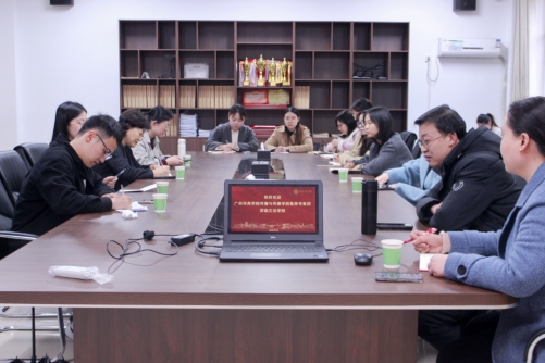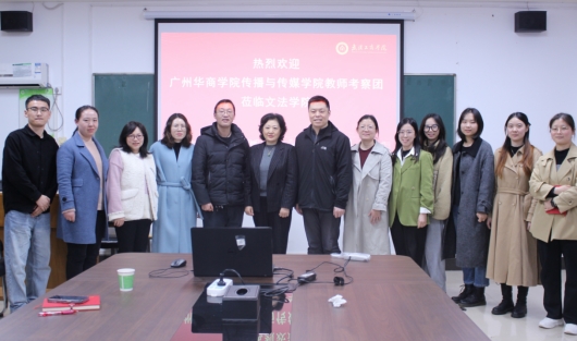 调研首站抵达武汉工商学院文法学院。我系调研组受到了武汉工商学院常务副院长林翔教授、院长助理毛毅副教授、新闻系主任亢海玲副教授、网络与新媒体系主任陈媛媛教授及多位专任教师的热情接待。双方围绕新闻媒体人才国际化培养路径、经验及存在问题进行了深入交流。潘晓慧主任表示,武汉工商学院文法学院在课程设计、实践教学、国际合作等方面,为我系如何设计和开展国际新闻方向带来了深刻思考和启发。