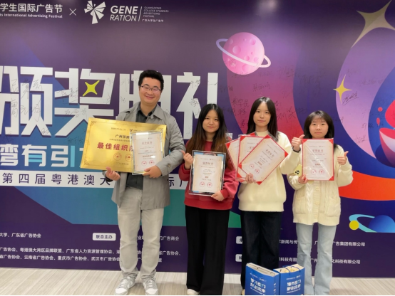 本届赛事共收到超3500 份创意作品, 来自暨南大学、 深圳大学、华南理工大学等高校的 11 组优秀作品参与最终角逐。tyc太阳成9728集团荣获“最佳组织院校奖”,广告学系赵安琪老师获“优秀指导教师”荣誉。