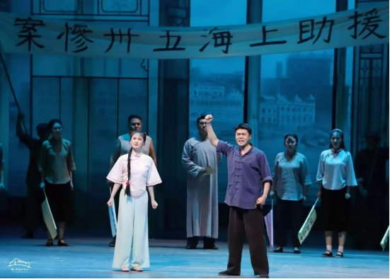 这部革命题材话剧让我从专业角度重新认识了声音的力量。故事里周炳的成长真实动人,从痛失爱人的青年到坚定革命者的转变,演员用声音的细节传递了蜕变过程:初期的清亮音色逐渐变得低沉浑厚,颤抖的哽咽与压抑的气声交替,让痛苦与觉醒变得可感可触。陈文婷娇俏的语调与周炳的沉稳对比,暗示了不同阶级青年的命运分路。