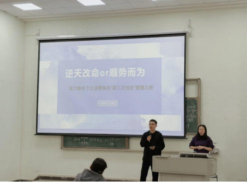随后,李敏记者详细阐述了当前主流媒体面临的五大挑战,包括用户流失与注意力争夺、广告收入断崖式下跌、技术短板与人才结构失衡、内容权威性遭遇稀释以及体制僵化。这些挑战直击主流媒体痛点,引发在场师生深思。