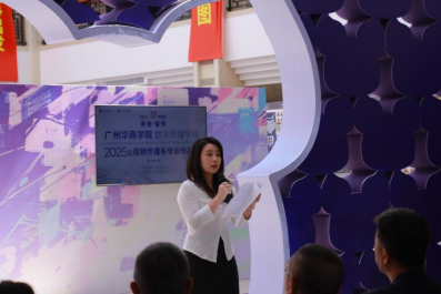 开幕式上,数位嘉宾的发言为展览增添了深刻内涵。视频传播系戴金玲主任代表全系,对到场的领导、嘉宾和师生表达了热烈欢迎与诚挚感谢。她提到,此次毕业展是“扎根传统文化、拥抱数字创新”教学理念的生动实践。同学们将传统文化与潮流、科技元素巧妙融合,展现出卓越的创新实践能力。学校一直重视产学研融合,邀请企业导师现场选拔人才,并计划深化与优质企业合作,将AIGC技术融入课程,确保教学紧跟时代步伐。戴主任鼓励毕业生坚守艺术初心,在未来继续发光发热。