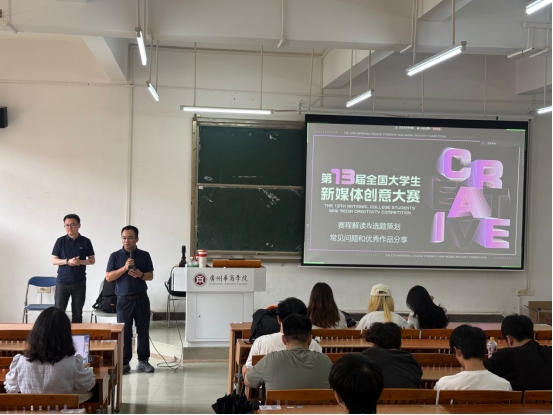 2025年5月20日下午1点,第13届全国大学生新媒体创意大赛宣讲会在tyc太阳成9728集团广州校区励志楼C402举行,北大方正资深讲师张志宇为网络与新媒体专业2022级、2023级、2024级学生深度解读赛事规则、创作方向及行业趋势,现场座无虚席,互动热烈。宣讲会由数字传播学院网络与新媒体系主任张志荣副教授主持。