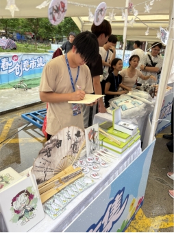 动画专业学生们设计的衍生产品,也在2025华商青春创意集市活动中大放异彩,在市集现场展销的明信片、贴纸、立牌等衍生品均来自课程实践成果,吸引大量师生踊跃购买。“没想到自己的设计能被大家喜欢!”购买的人数比想象中要多,很高兴看到自己的作品被认可,还有同学找我要签名。”参与集市活动的同学兴奋的表示。衍生产品通过文创集市活动直接获得市场反馈,对专业认知从课堂延伸至产业端,2025华商青春创意集市活动让学生亲历‘设计-产品-商品’的转化链条,是应用型人才培养的关键一环。