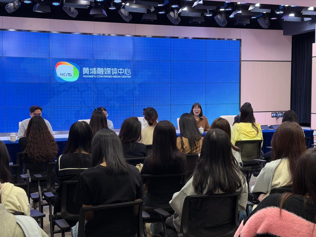 11月11日与18日,数字传播学院新闻学系2022级学生在罗美娇、陈嘉玲两位老师的带领下,分两批前往黄埔融媒体中心开展实践教学。此次活动作为《社交媒体运营与管理》课程校企合作的核心环节,旨在通过实地参访,促进课堂理论与媒体实践的有效衔接。黄埔融媒体中心首席产品官黄蓉芳全程接待并进行深入讲解。