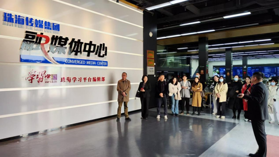 图6.新闻系教师团队参观访问珠海融媒中心,调研中国最先进的融媒发展理念和现状