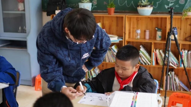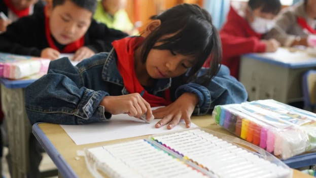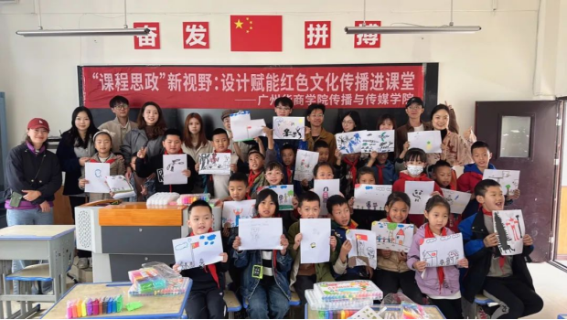 教师带领学生到理县通化湖南爱心希望学校进行支教,以美育的形式把红色文化传播进课堂。