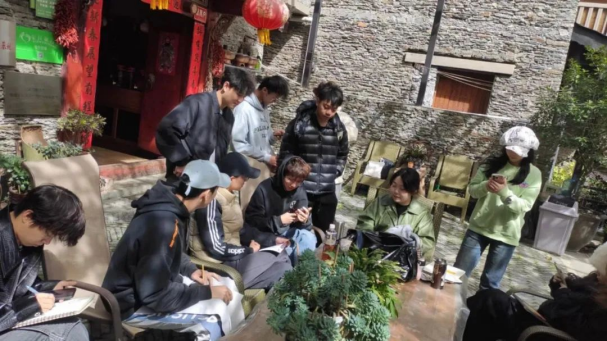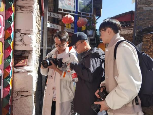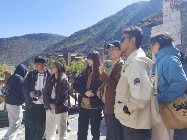 本次考察主要内容为川渝文化,带队教师为视频传播系戴金玲、侯兆丰、谭玉怡和边放老师。学生在桃坪羌寨、西索民居进行田野调查、视频拍摄和摄影创作。老师进行现场教学指导,并对学生们的创作草图与创作构思进行交流探讨。