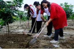 为了提升生态环境“绿”品质,践行“绿水青山就是金山银山”的理念,曹老师带领“青衿萤火”实践团在潭王村开展实地调研和美丽乡村“三绿”实践活动。通过采访当地果农、入户调研等方式,实地考察乡村绿化情况,深入了解当地扩绿需求。随后,师生们通过清洁美化潭王村街道、红色主题公园、潭王蓝康红军小学,种植养护当地村民的果树,将“扩绿、兴绿、护绿”行动实际落实到乡村中,以实际行动助力绿美广东。